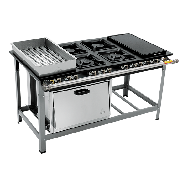 Fogão 4 Bocas Série Luxo Com Forno e Chapa e Banho Maria 2QS/2QD Baixa Pressão – Metalmaq