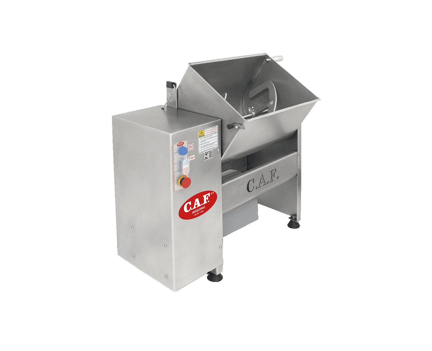 A misturadeira de carne M-61 é um equipamento indicado para uso em pequenas e médias indústrias de embutidos. Estrutura construída em aço inox, caçamba, eixos, pás, tampa e protetores construídos em aço inox. Trabalha com um eixo, conectados a duas pás, cujo movimento composto proporciona uma mesclagem perfeita. A Misturadeira de carne M-61 é dotada de sistema basculante que permite esvaziar a caçamba de forma simples e prática. Equipada com tampa protetora na caçamba.